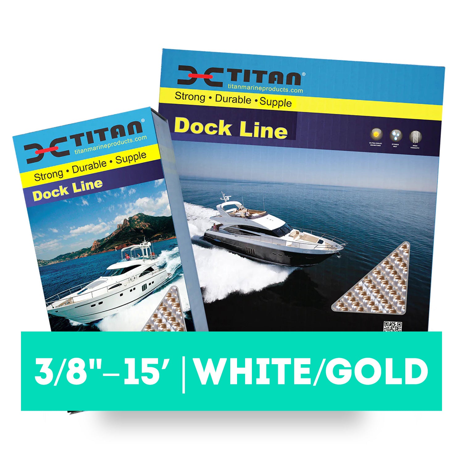 Titan 3/8in-15ft Double Braid Dock Line - White/Gold