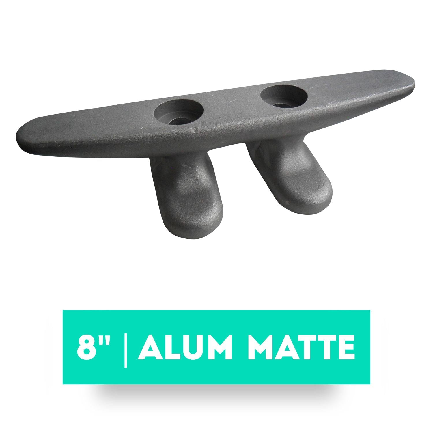These cast aluminum cleats are sand blasted to give a clean gray matte finish. Each cleat is designed with an extra wide footprint for added strength. As well, each cleat has an enlarged counter-sunk hole for easy installation with a socket. Can be through bolted or lag bolted. Available in two styles.